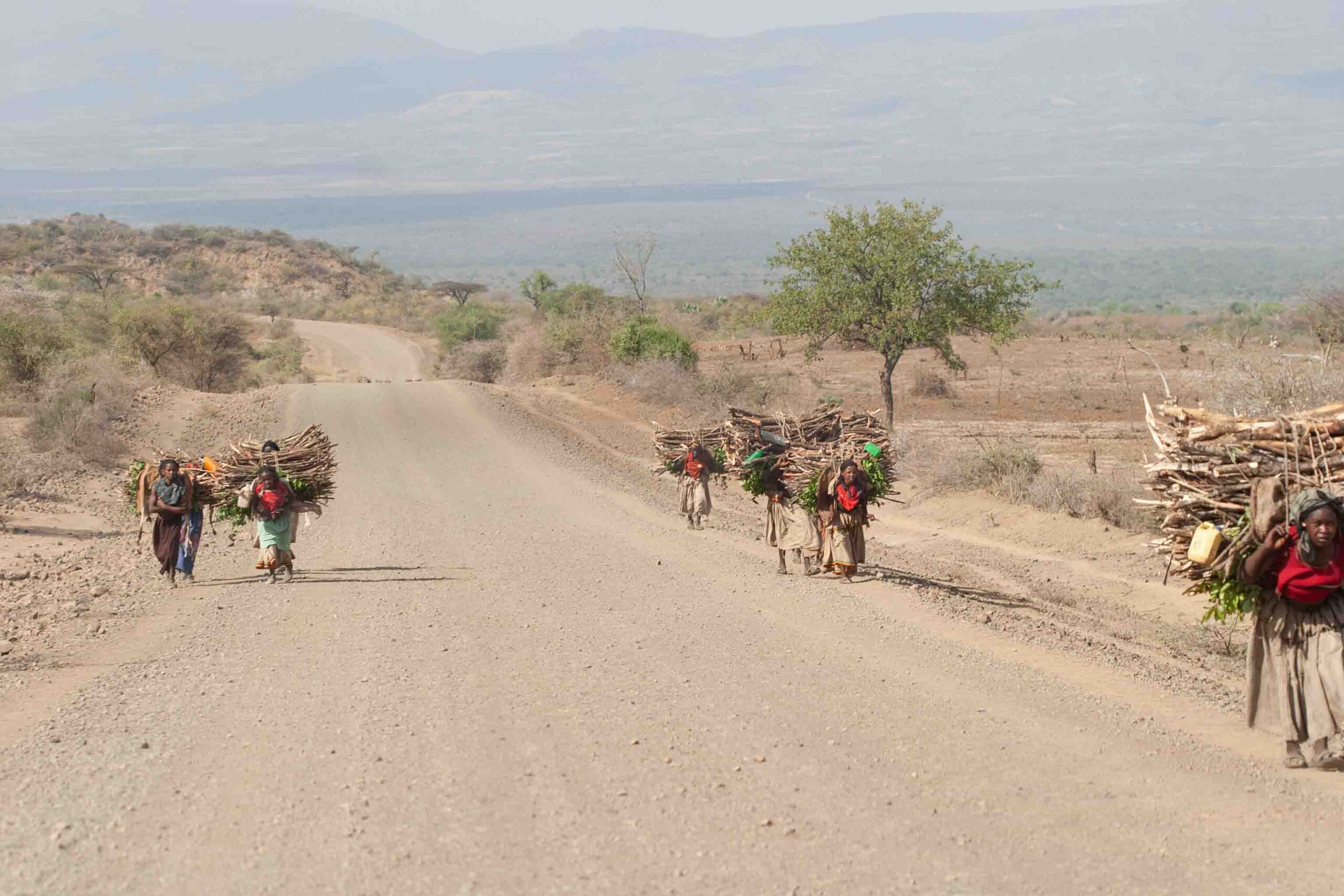 A vendor wearing a traditional Cambodian scarf called kroma at a busy road intersection from Cambodia to Thailand.